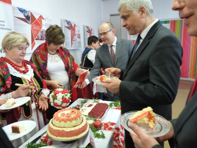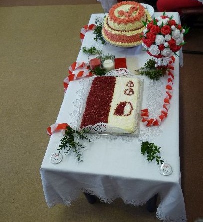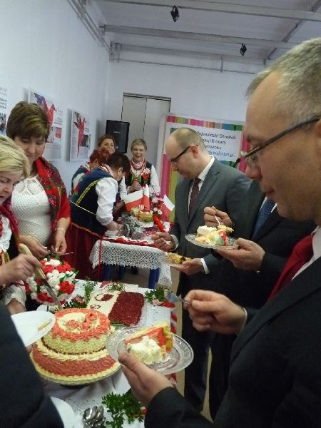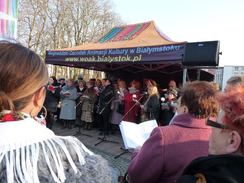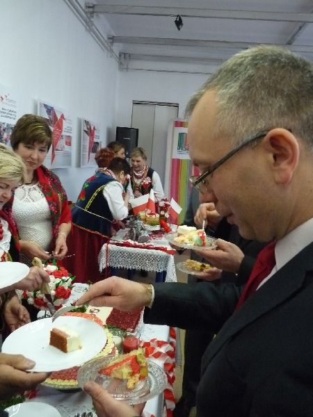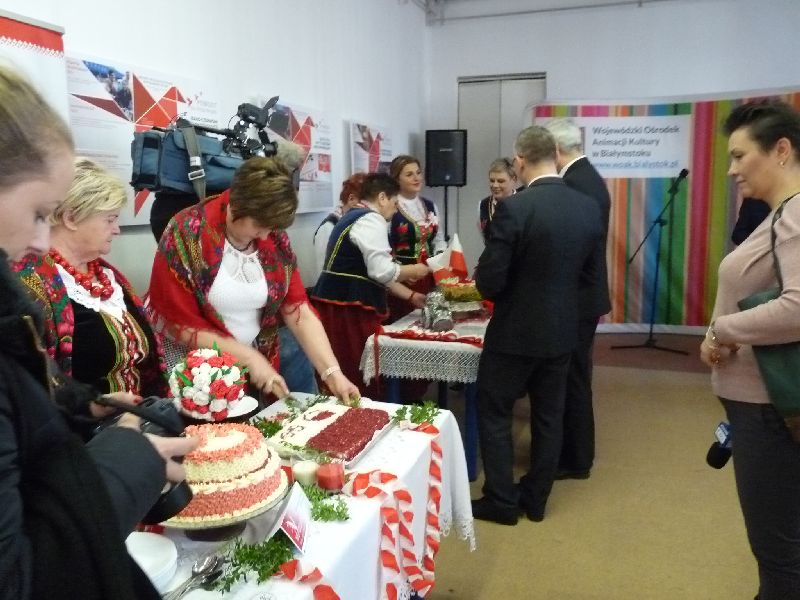 100 lat temu mieszkańcy Białegostoku częstowali słodyczami żołnierzy piechoty wkraczających do miasta, tak dzisiaj mieszkańcy miasta byli częstowani biało-czerwonymi ciastami, przygotowanymi przez zaproszone Koła Gospodyń Wiejskich.