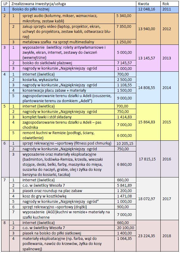 WYKONANIE FUNDUSZU SOŁECKIEGO 2011-2018 – SOŁECTWO DĄBRÓWKI