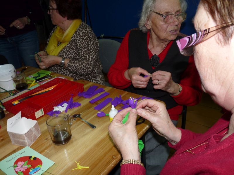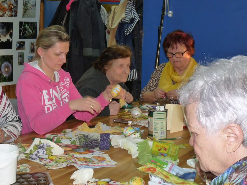 Dzisiaj (piątek 7/4/17 r) już po raz trzeci spotkałyśmy się, aby przygotować dla Fundacji Pomóż Im ozdoby na Kiermasz Wielkanocny. Tym razem towarzyszyły nam panie z zaprzyjaźnionego Klubu Seniora z Supraśla. Nie tylko przyjechały pomóc nam przygotować kolejne ozdoby, ale również przywiozły trochę swoich, wcześniej przygotowanych ozdób. Odwiedzili nas również przedstawiciele Fundacji, którym przekazaliśmy wszystkie do tej pory wykonane ozdoby.