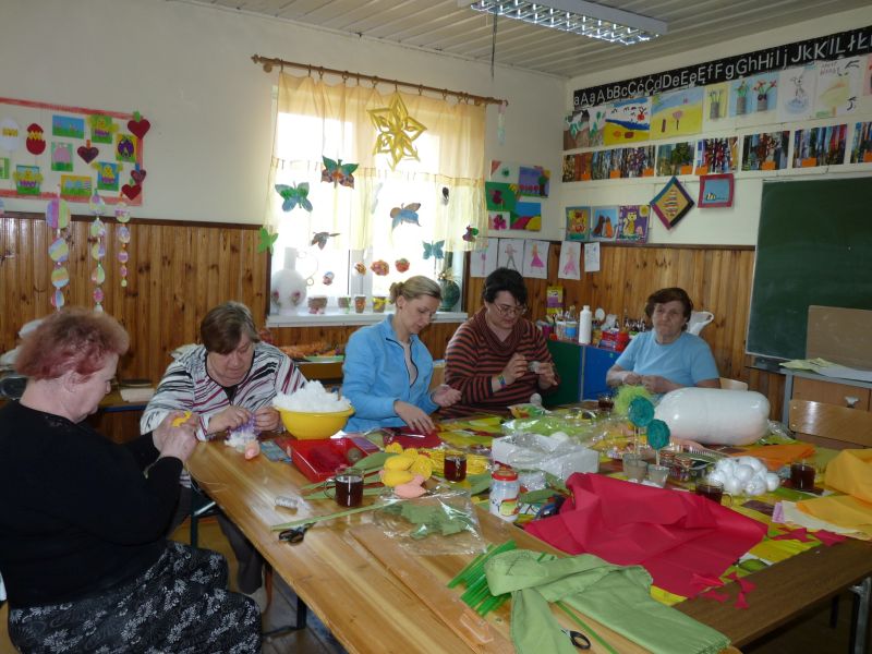 Tym razem królowały kurki, były też tulipany oraz stroiki robione przez Anię. Planujemy następne spotkanie na piątek 7 kwietnia o 17.00, podczas którego będziemy ponownie gościć Klub Seniora z Supraśla. Wspólnie będziemy kończyć rozpoczęte prace oraz podpatrywać jak nasi goście wyczarowują wielkanocne pocztówki oraz cuda z bibułki.