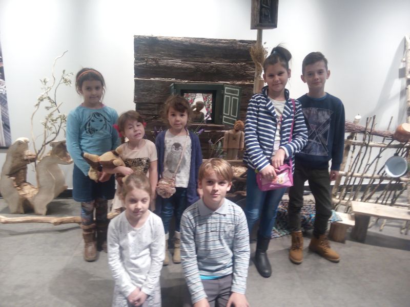 Poniżej prezentujemy zdjęcia z foyer Teatru Lalek, uczestnicy zadania na tle fragmentów scenografii.