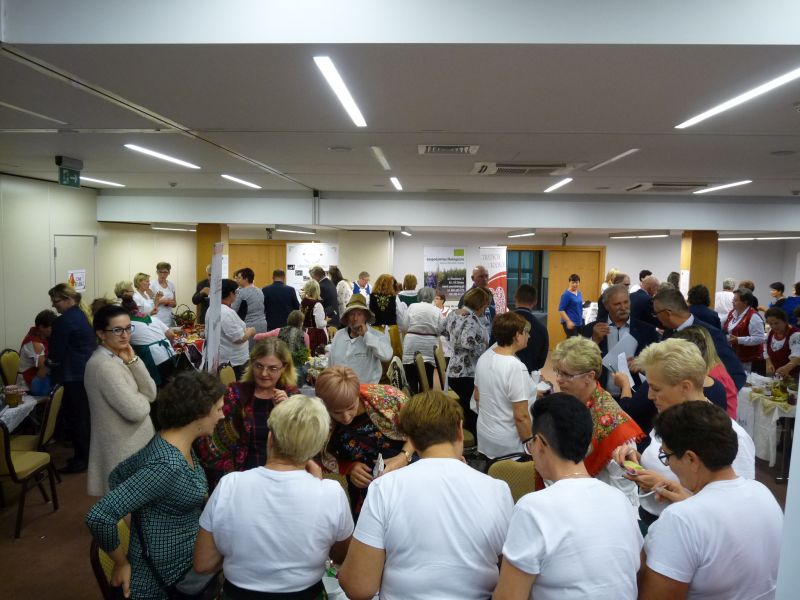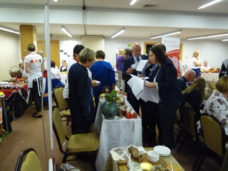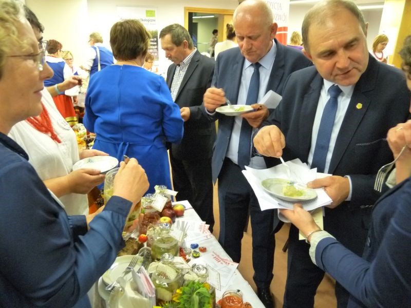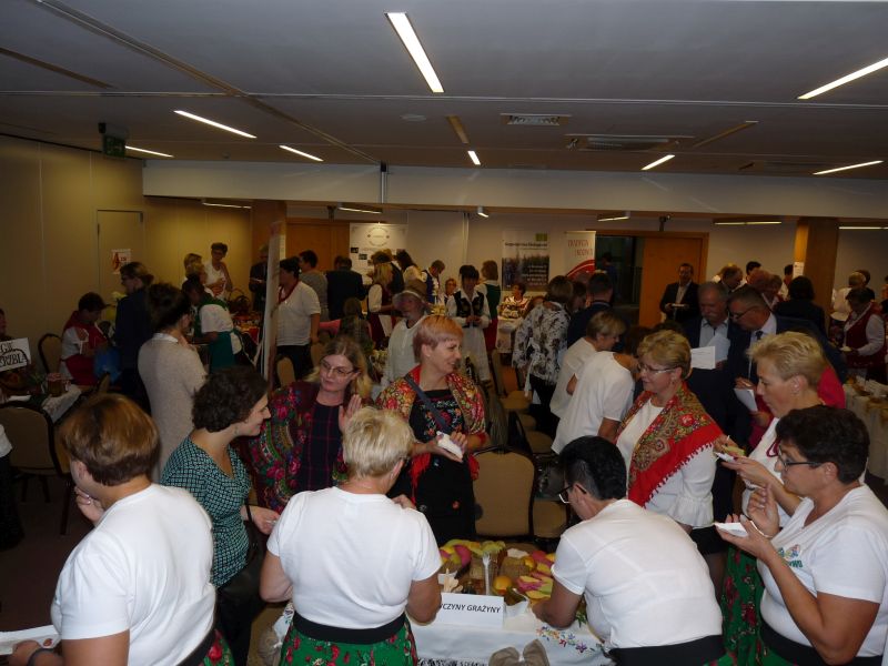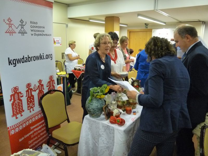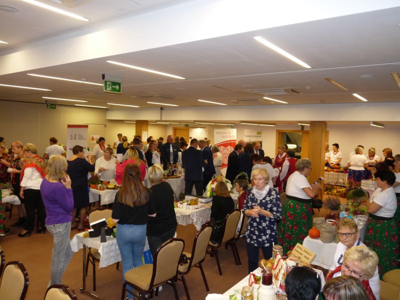 Kolejny konkurs w którym brałyśmy udział rozstrzygnięty. „Skarby Europy zaklęte w szkle” polegał na przygotowaniu przetworów w trzech kategoriach: owoce, warzywa, mięsa/ryby w postaci tradycyjnych weków, takich jakie robiły nasze babcie/mamy. Wiele z nas robi przetwory nadal, ale dla niektórych to już przeżytek. Startowało ponad dwadzieścia Kół Gospodyń Wiejskich. Na sali było bardzo barwnie, zarówno od przygotowanych przetworów jak i dzięki kolorowym strojom wielu zespołów.