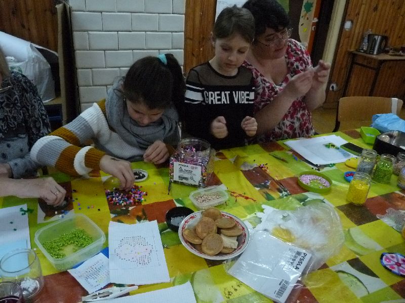 W dzisiejsze (17/02/19) sobotnie przedpołudnie po raz kolejny Ania zorganizowała zajęcia – tym razem powstały kolorowe – koralowe podstawki; dodatkowo osoby chętne mogły skorzystać z sali do ping – ponga; udało się też naszą kuchnię wzbogacić o kolejne dwie szafki – do pełni kuchennego szczęścia brakuje jeszcze nam jednej szafki – może znajdzie się sponsor?