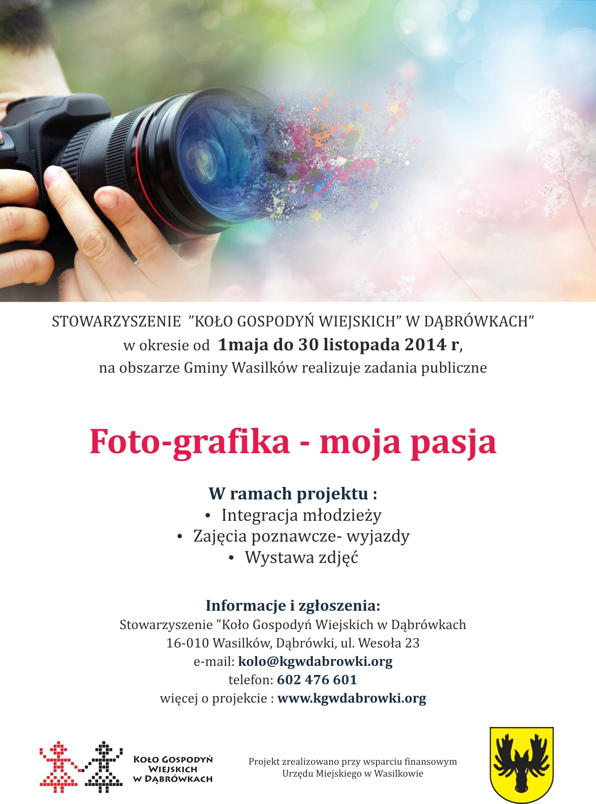Zapraszamy dzieci i młodzież z gminy Wasilków do aktualnie realizowanego zadania "Foto - grafika - moja pasja"