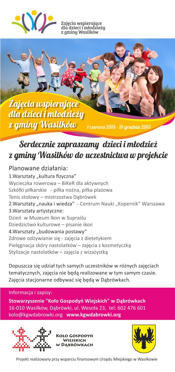 Projekt przeznaczony jest dla dzieci i młodzieży z gminy Wasilków.