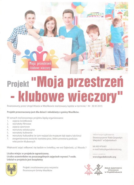 W kwietniu 2013 rozpoczyna się realizacja nowego projektu pt "Moja przestrzeń - klubowe wieczory".