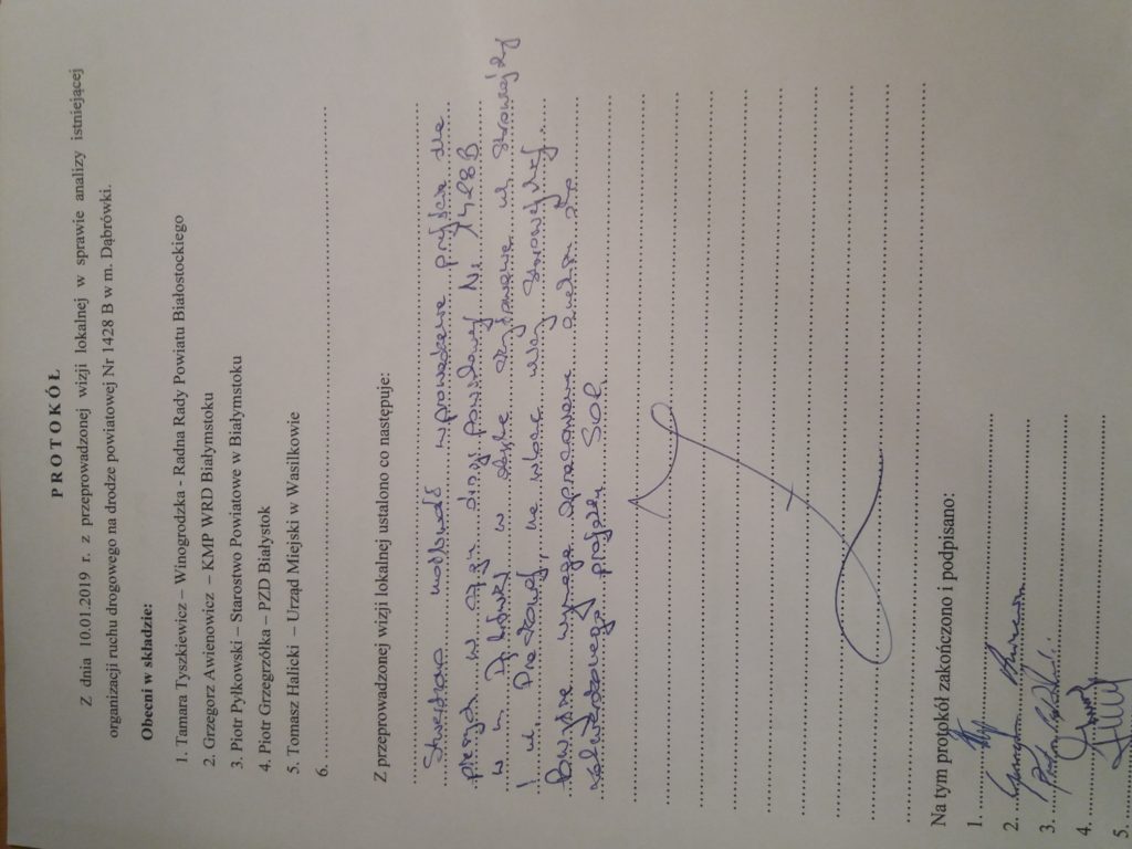 Dodatkowo przedstawiciele Powiatowego Zarządu Dróg potwierdzili, że ogranicznik prędkości (tzw. „pachołek”) zostanie lepiej oznakowany, tj. pomalowany oraz wyposażony w tzw. „kocie oczy”.