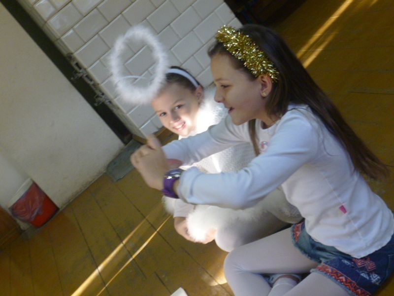 Trwają próby do jasełek, zdjęcia odsłaniają coraz więcej szczegółów. Już niedługo, bo 18 grudnia, podczas Spotkania Opłatkowego organizowanego jak zwykle dla mieszkańców Dąbrówek, będziemy mogli powiązać sceny widoczne na zdjęciach z tekstem. Zapowiada się interesująco.