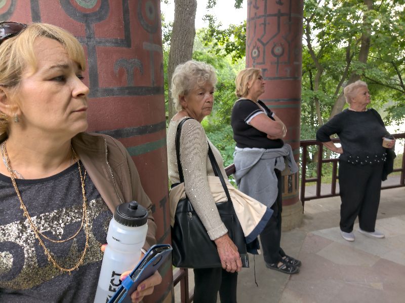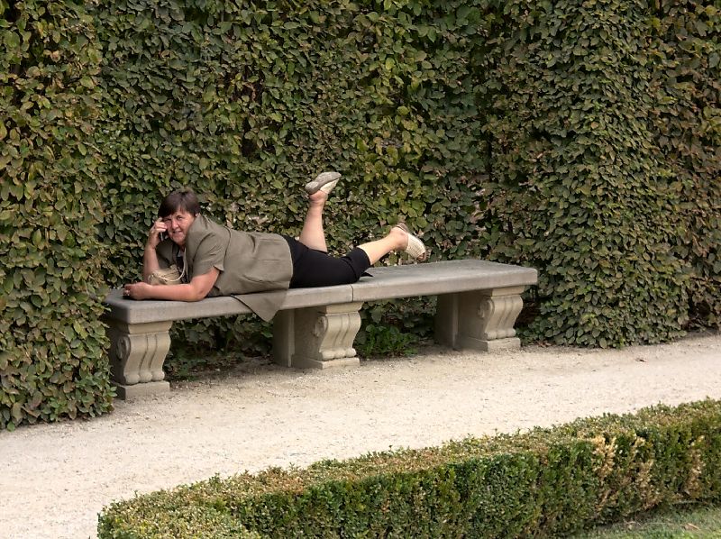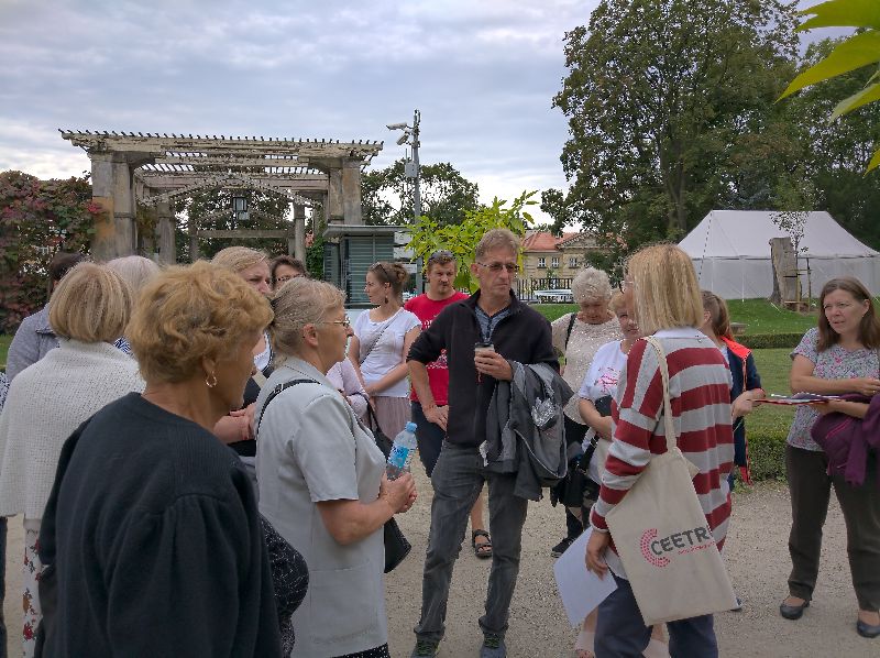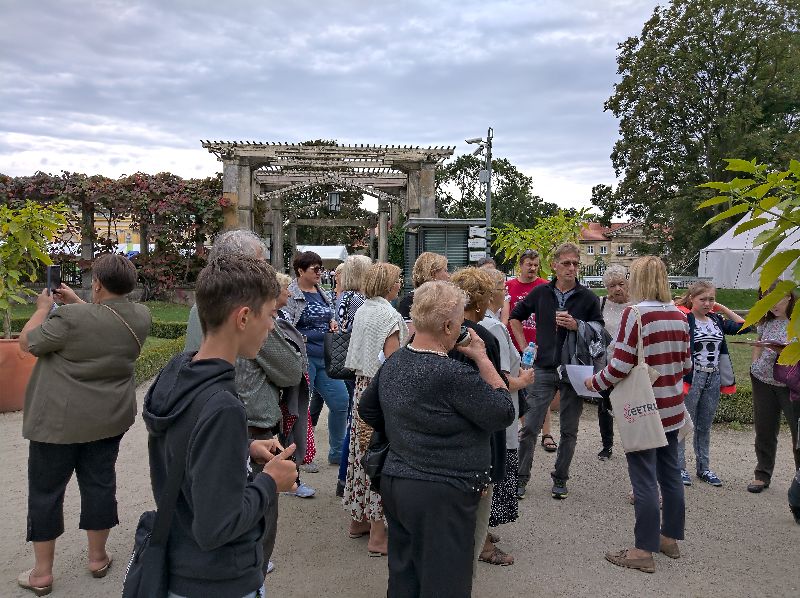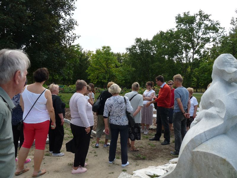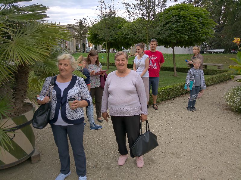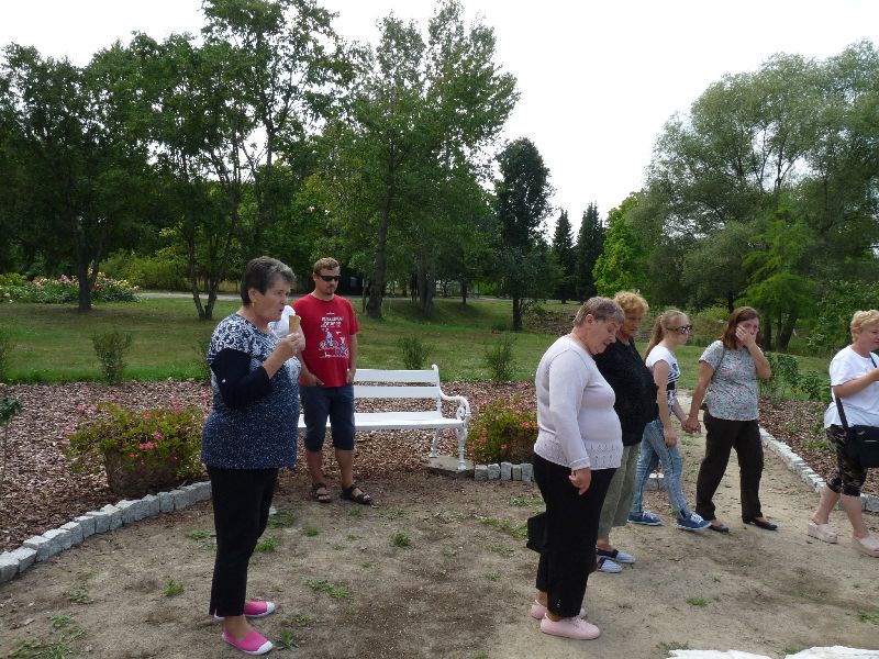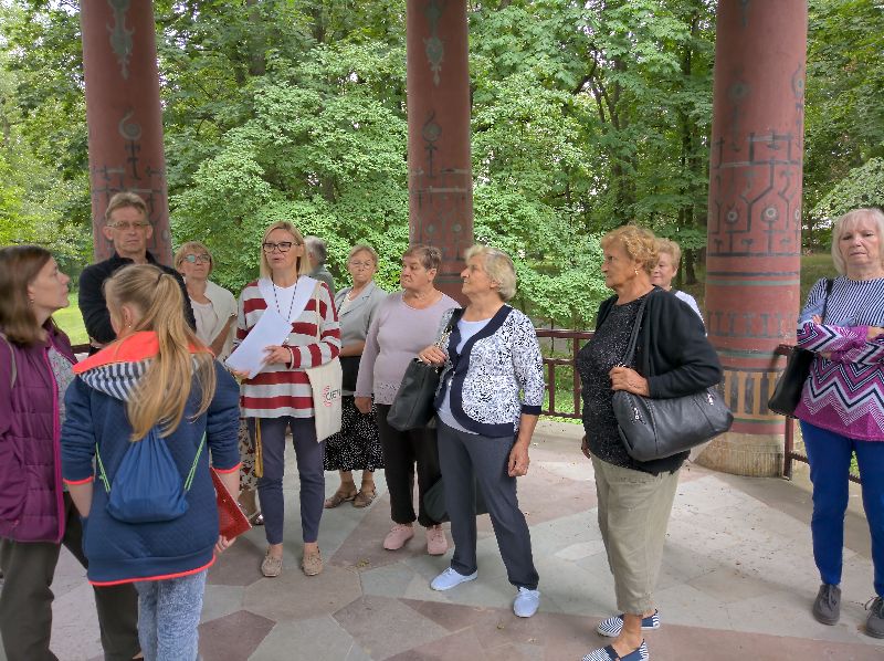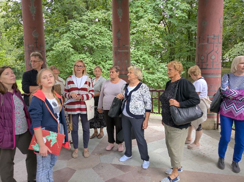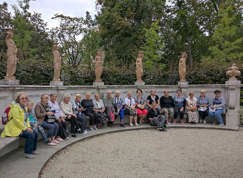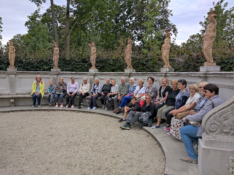 Trafiliśmy na wspaniałych przewodników, którzy z pasją opowiadali zarówno o wnętrzach pałacowych, jak również o ogrodach, jego architekturze jak również o samych roślinach ( Powsin). Po przejściu wielu kilometrów z przyjemnością wszyscy usiedliśmy w restauracji. Co prawda nie wszyscy zaakceptowali podane gazpacho, nasze panie z koła gotują trochę inaczej. Najmłodszych uczestników wycieczki zadowolił dopiero cheeseburger, a jeszcze bardziej zabawka dołączona w pakiecie i dostępna obok zjeżdżalnia, ale każdy wiek ma swoje prawa, trzeba to zrozumieć.