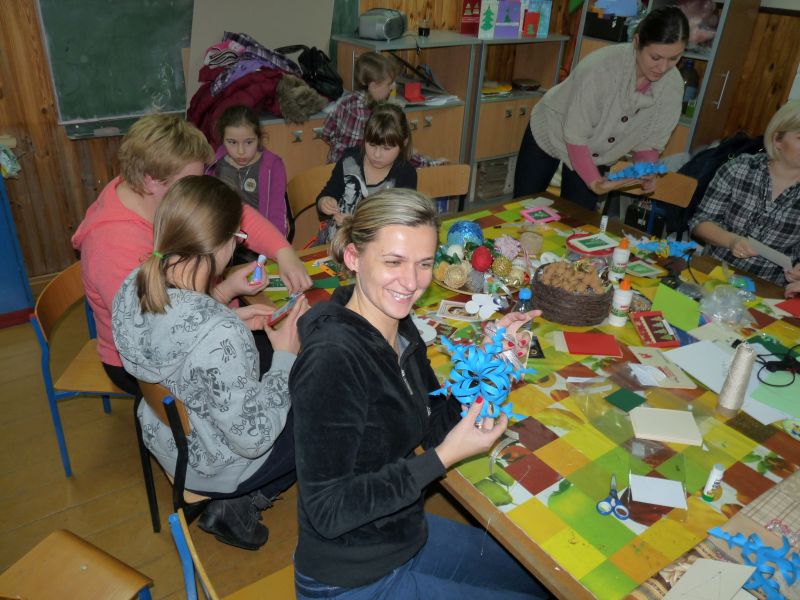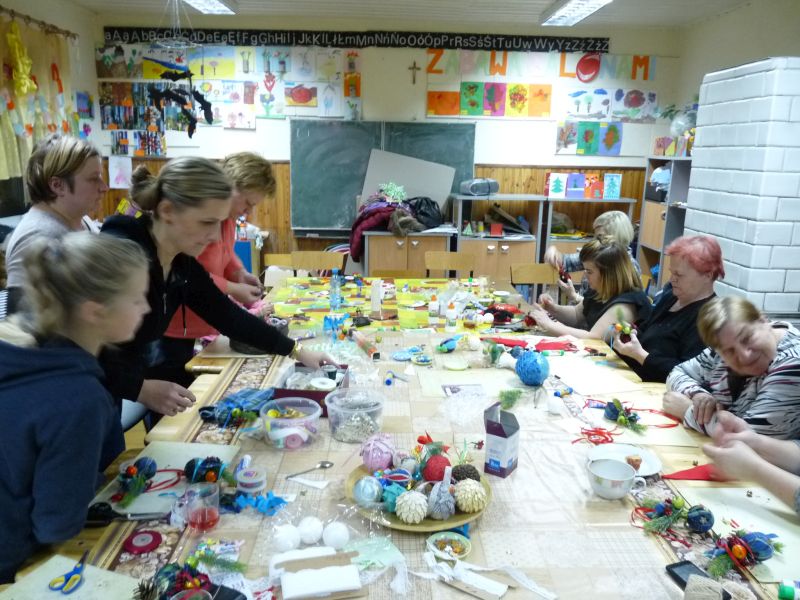 W piątek 2 grudnia odbyły się rodzinne warsztaty organizowane przez Podlaskie Stowarzyszenie Dużych Rodzin we współpracy z naszym Kołem Gospodyń Wiejskich. Warsztaty były poświęcone ozdobom świątecznym. W ciągu kilku godzin zdążyliśmy zrobić: kartki świąteczne, gwiazdy, mikołaje, bombki choinkowe.