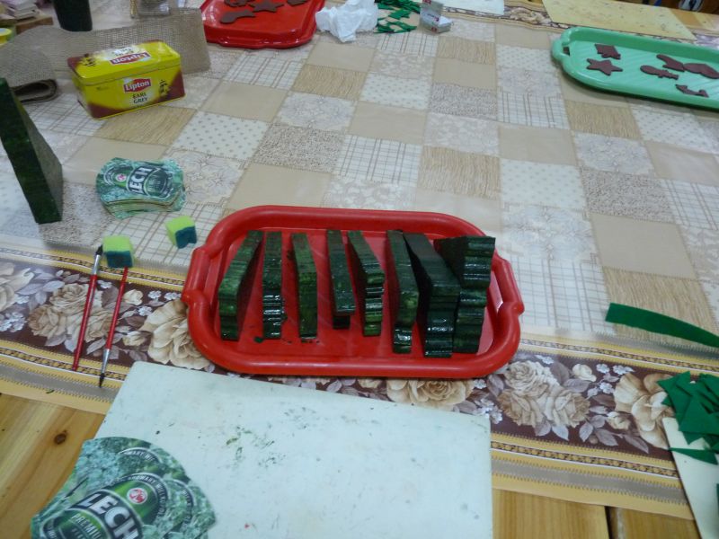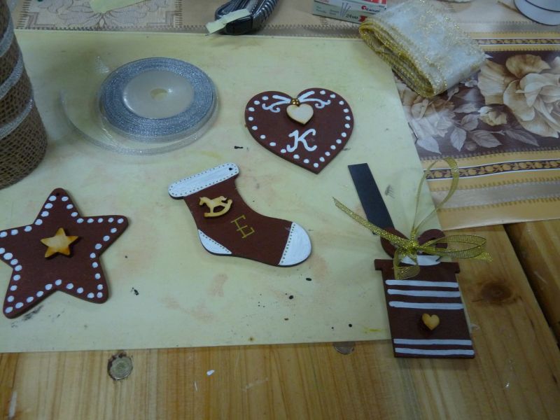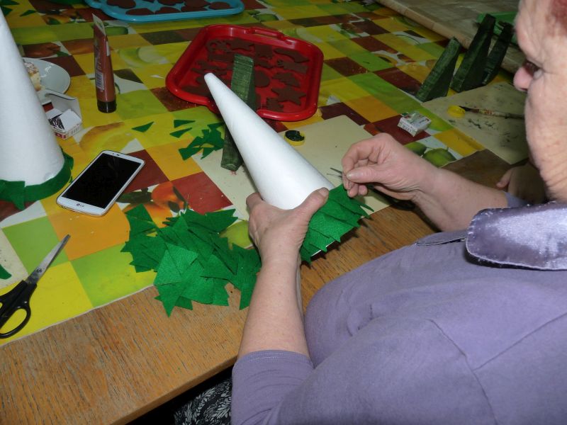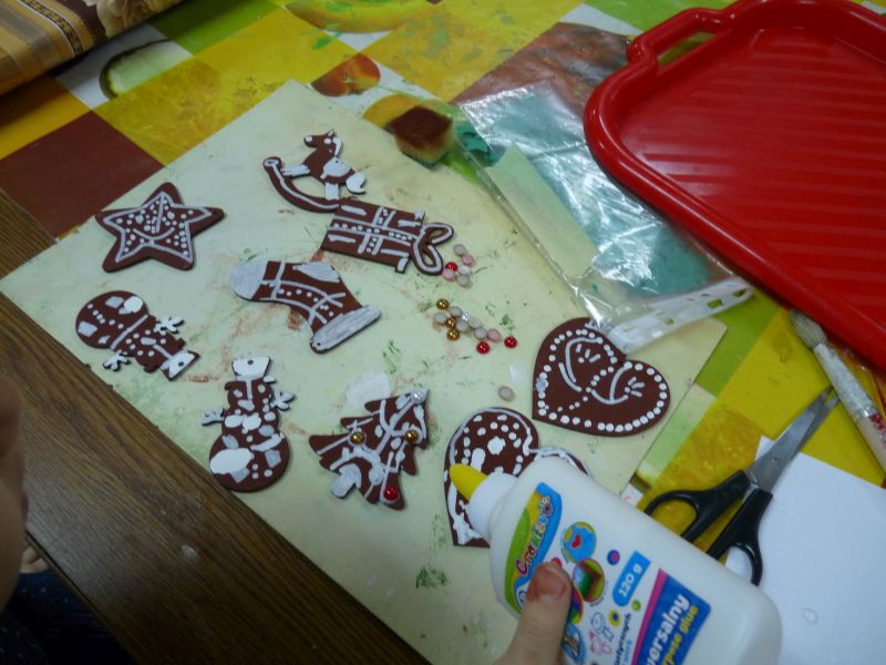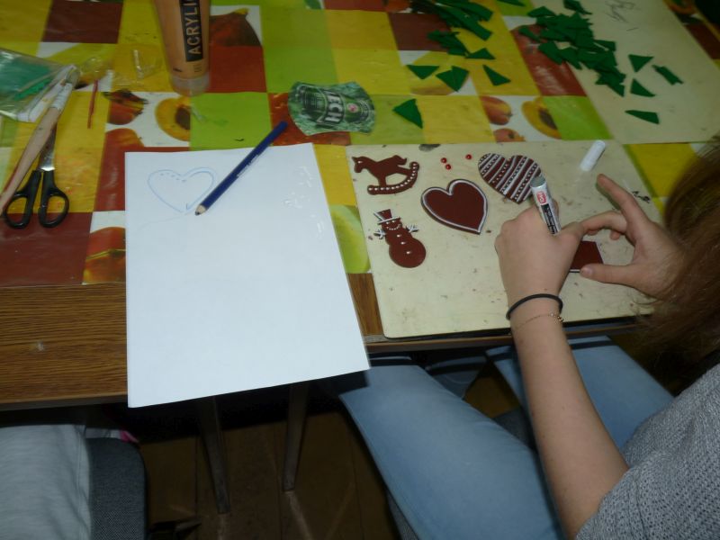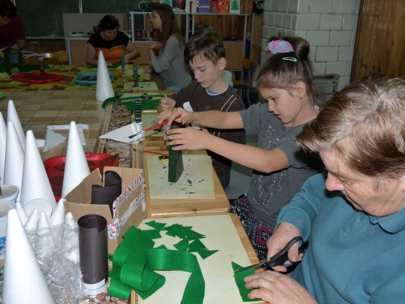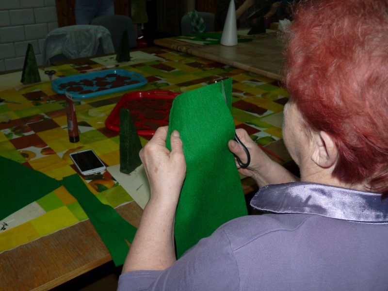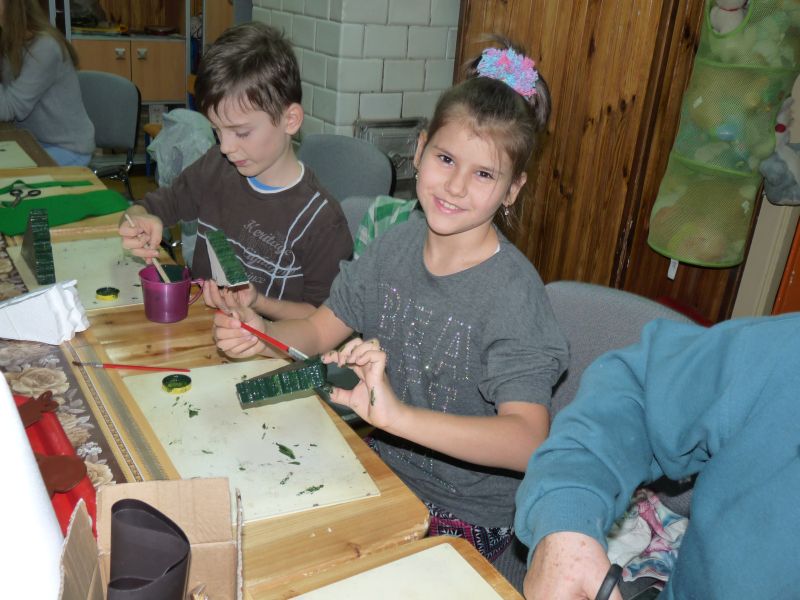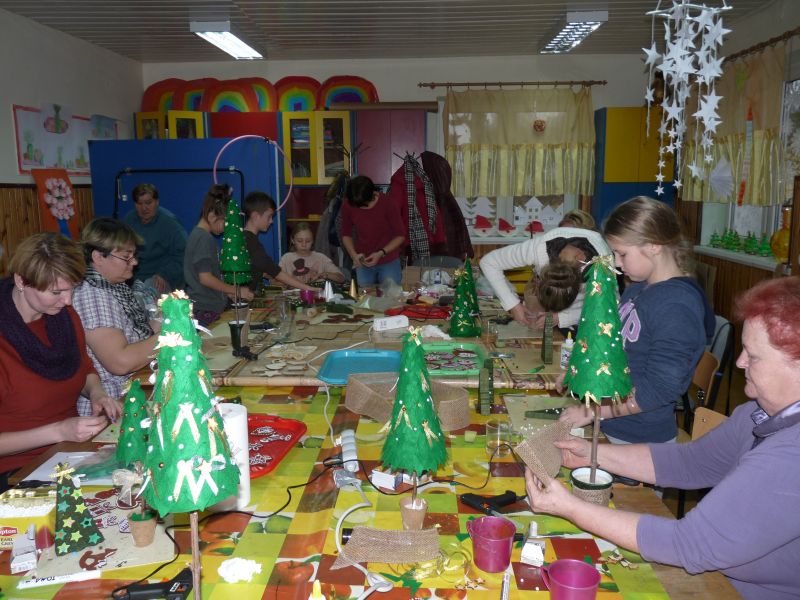 Kolejne zajęcia zrealizowane w ramach zadania Razem, to zajęcia kreatywne. Tym razem robiliśmy choinki oraz zawieszki, bądź magnesy o tematyce świątecznej. Na zdjęciach widać jak stoły przy których pracujemy zapełniają się kolejnymi pracami i półproduktami, aż pod koniec zajęć zamieniają się niemalże w prawdziwy las. A pomiędzy choinkami niczym polukrowane pierniczki leżą zawieszki i magnesy. 4 godziny zajęć minęły jak jedna chwila i wszystkie panie stwierdziły, że było to znacznie przyjemniejsze zajęcie niż co sobotnie sprzątanie i kucharzenie. Dzieci też były bardzo zaangażowane w wykonywane prace, co widać na zdjęciach.