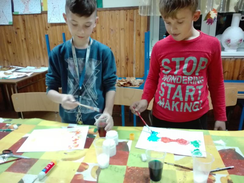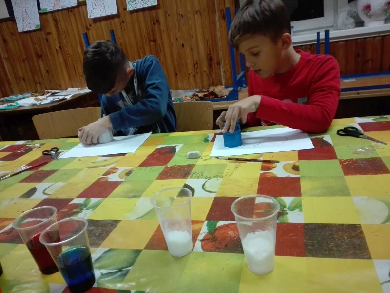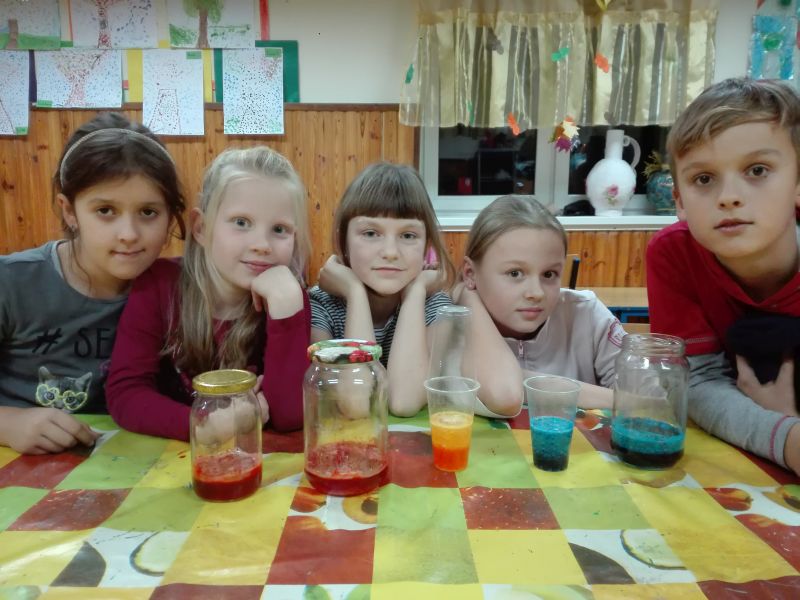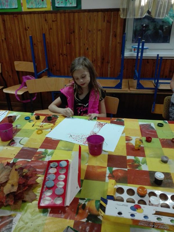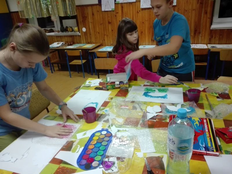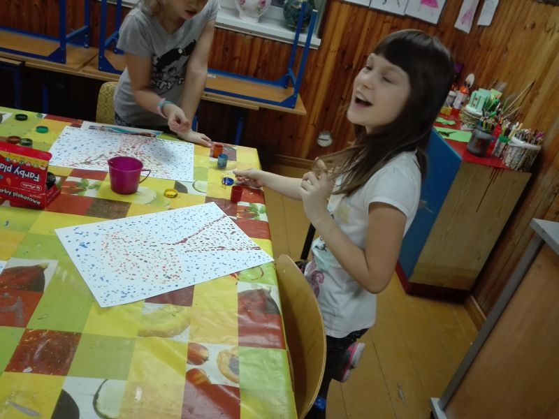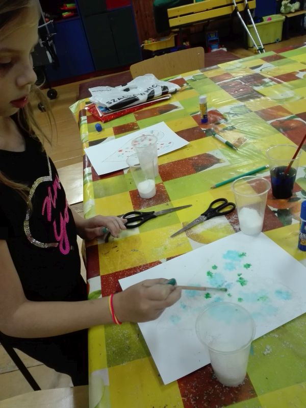 Poniżej prezentujemy zdjęcia z kilku zajęć, na których widać dzieci podczas pracy oraz ich prace. Zajęcia są bardzo różnorodne. Dzieci wykonują zarówno prace plastyczne z elementami zmysłoplastyki, podczas których zapoznają się i bawią różnymi fakturami, materiałami, a nawet zapachami. Inny rodzaj zajęć stanowiły zajęcia doświadczalne. Można przypuszczać, że podczas kolejnych zajęć pani Paulina pokaże równie ciekawe i pożyteczne formy spędzania czasu wolnego.