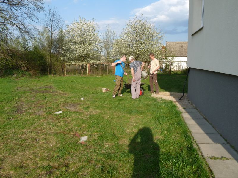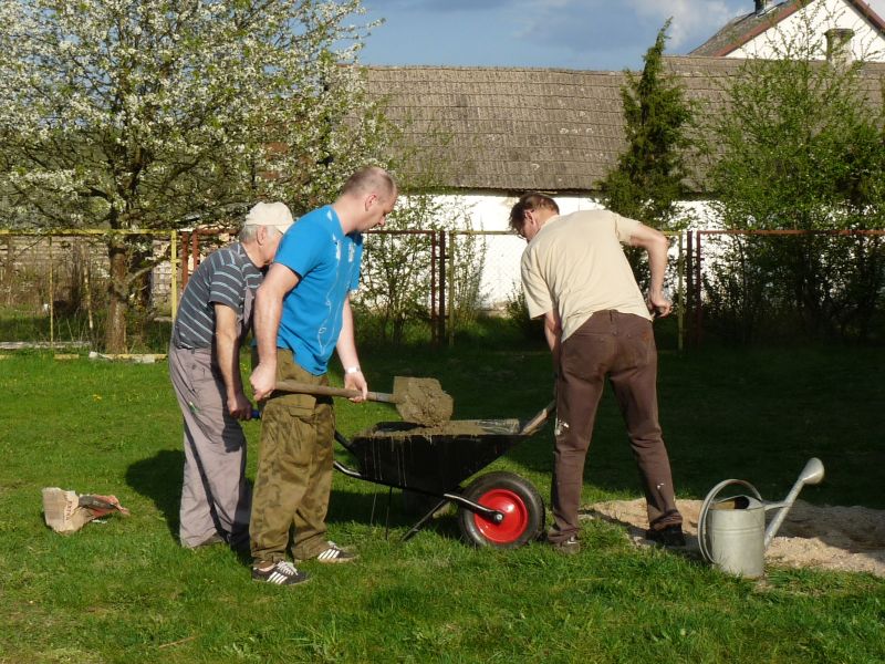 Poniżej kilka zdjęć prezentujących ekipę montażową oraz nowy drążek. Mimo, że robota ręczna, to wykonana do „winkla i wasserwagi”, na zdjęciu widać, że poziomica pomagała w prawidłowym mocowaniu drążków.